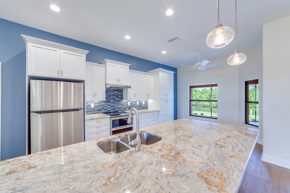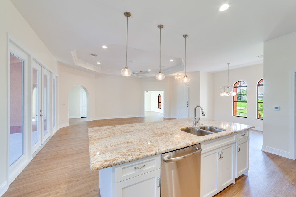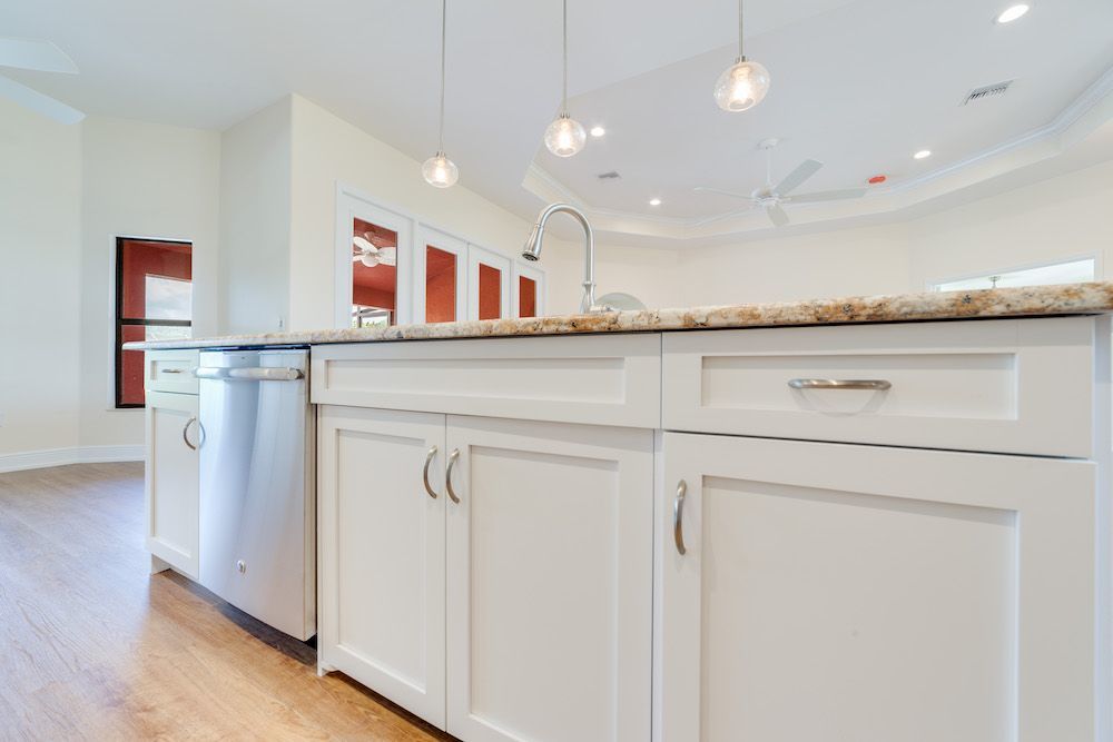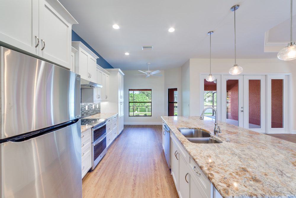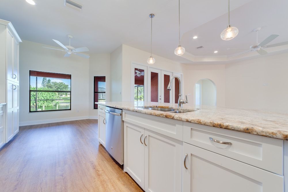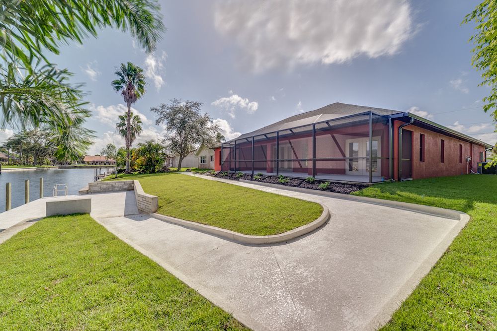 Notable features: Handicap (HDCP) accessible design, custom Mediterranean design exterior, limited lifetime shingle roof, impact glass windows, luxury vinyl plank flooring, propane generator, custom cabinetry to meet ADA standard, custom HDCP design with ramps and wide door openings, hand-selected granite tops, custom concrete ramp to dock for wheelchair accessibility, and paver driveway.