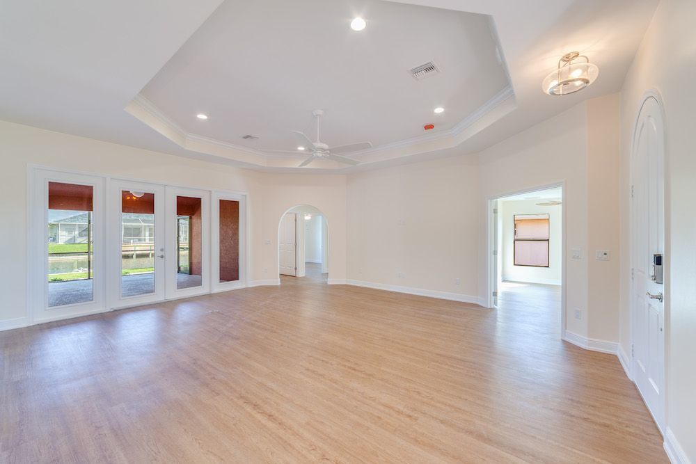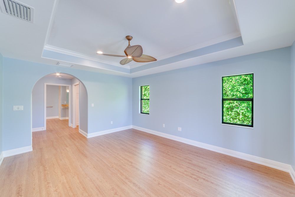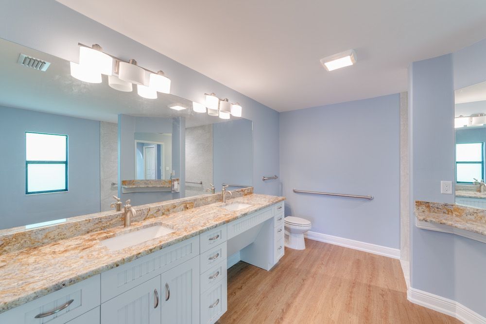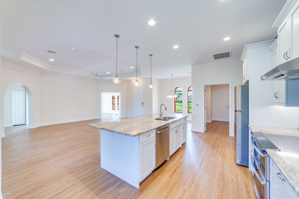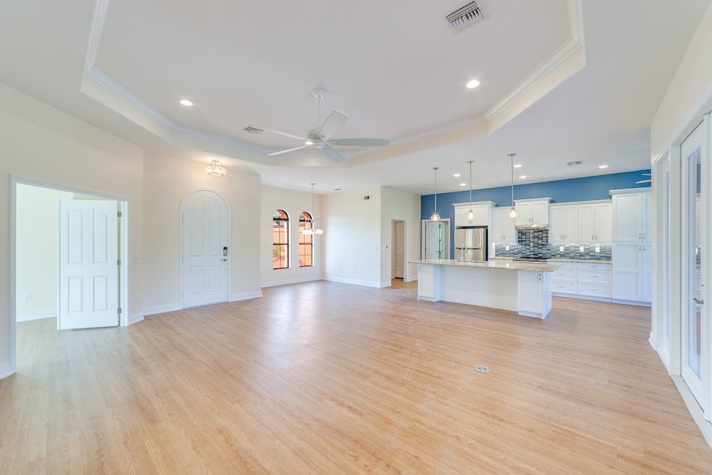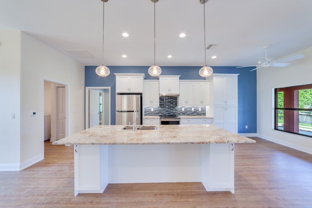 Notable features: Handicap (HDCP) accessible design, custom Mediterranean design exterior, limited lifetime shingle roof, impact glass windows, luxury vinyl plank flooring, propane generator, custom cabinetry to meet ADA standard, custom HDCP design with ramps and wide door openings, hand-selected granite tops, custom concrete ramp to dock for wheelchair accessibility, and paver driveway.