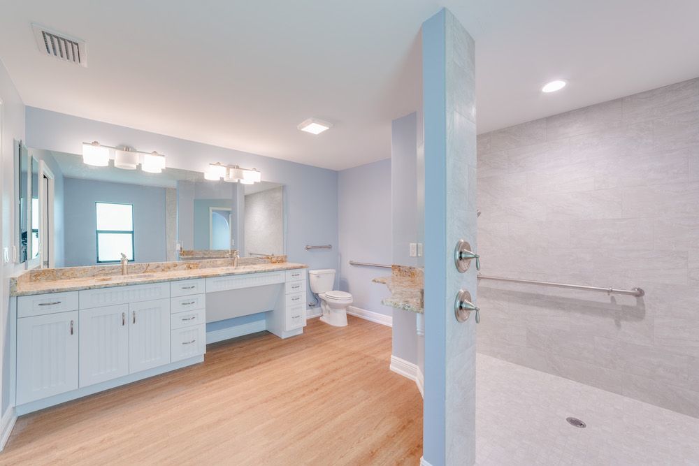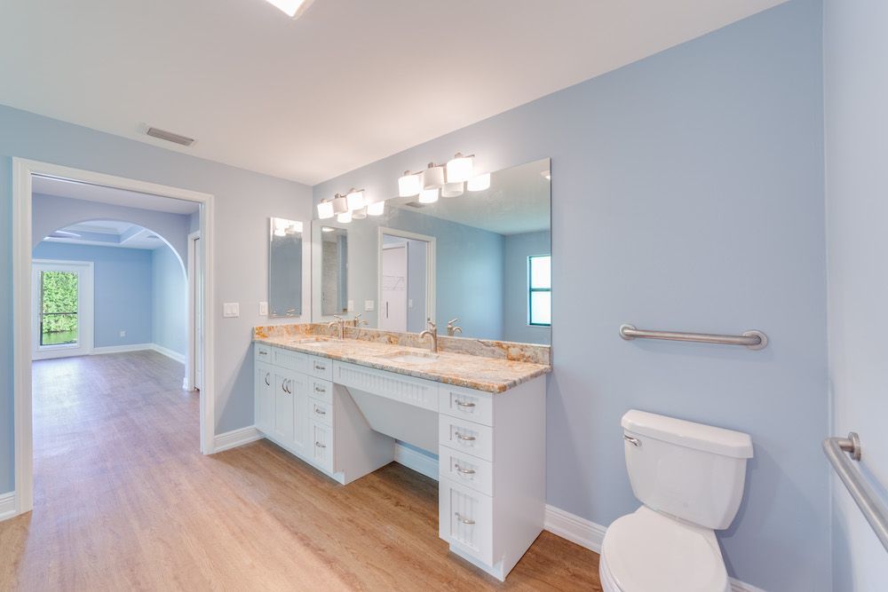 Our most popular model "The Japser Plan" takes on a new look and design especially for this Purple Heart recipient! This 4 bedroom 2 bath home has been specifically designed to accommodate our wounded VET. With ease of access for the wheel chair, every detail was carefully scrutinized down to the custom ramp that allows easy access in the chair down to the water! THANK YOU FOR YOUR SERVICE!