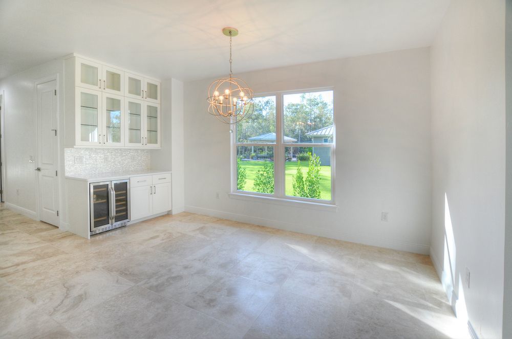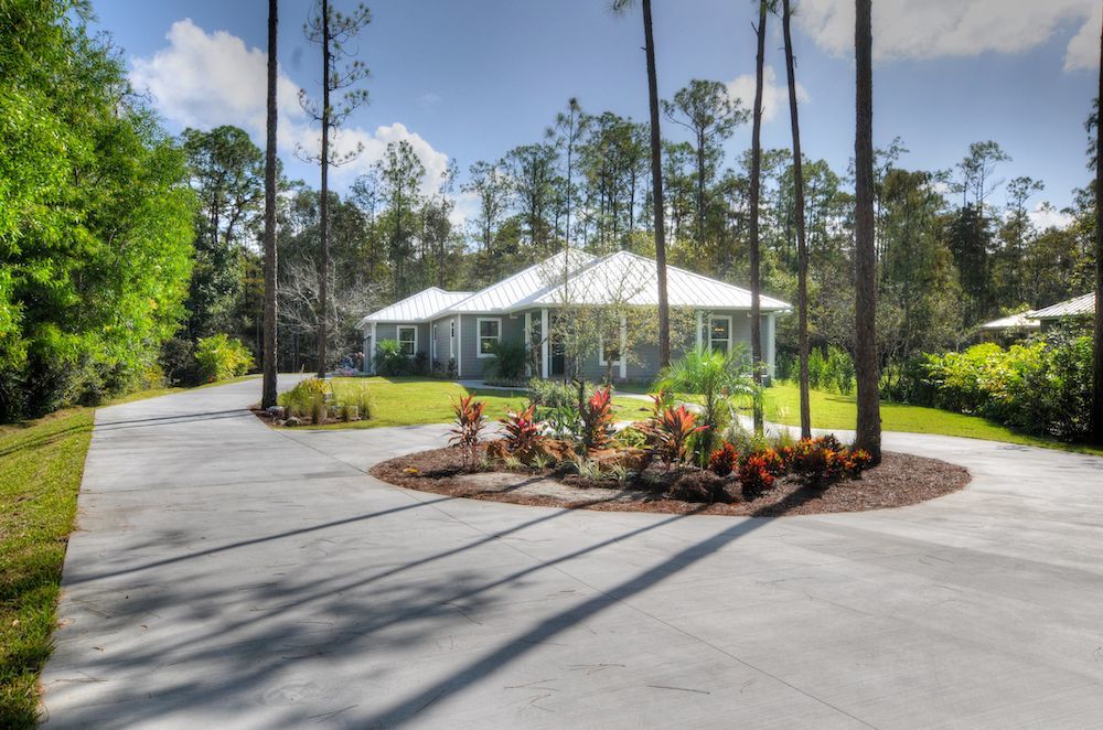 Notable features: Raised seam metal roof, impact windows and French doors, mud-set travertine with minimal grout line & Hone/seal in place flooring, custom floor to ceiling cabinetry, age in place design, built on acreage, custom designed white quartz tops with waterfall edges, custom designed utility room, and custom backsplash tile.