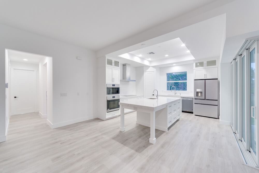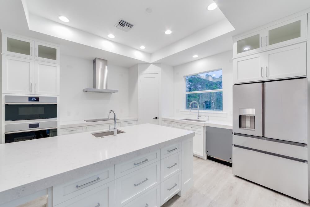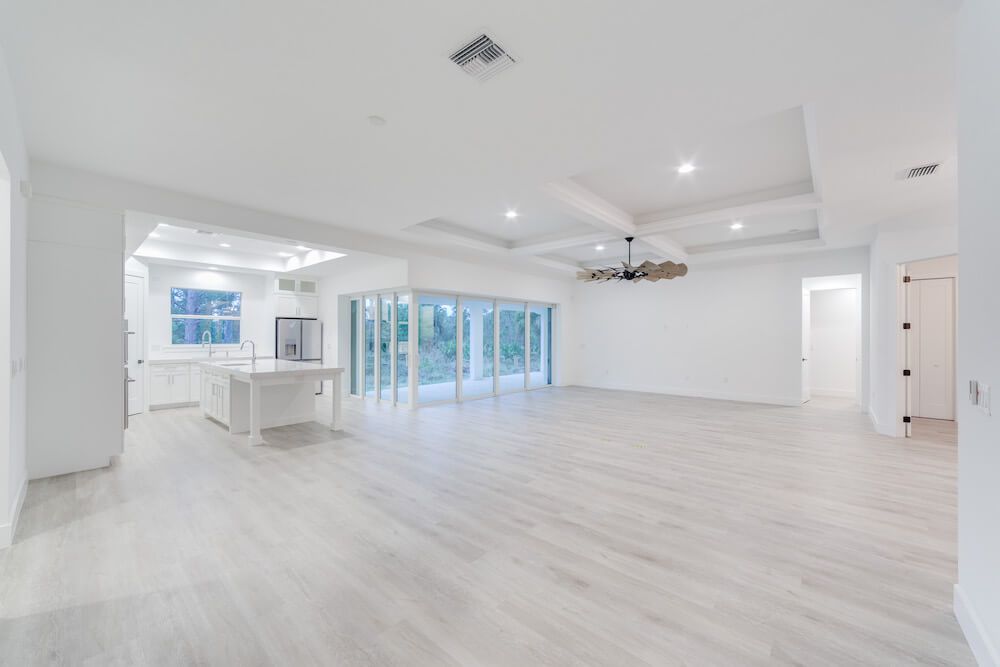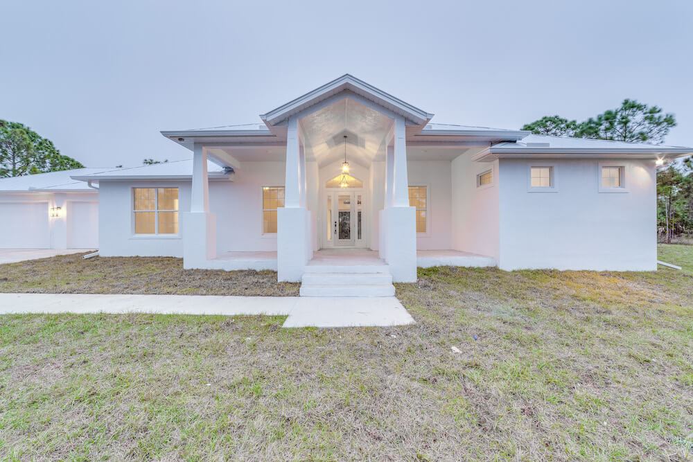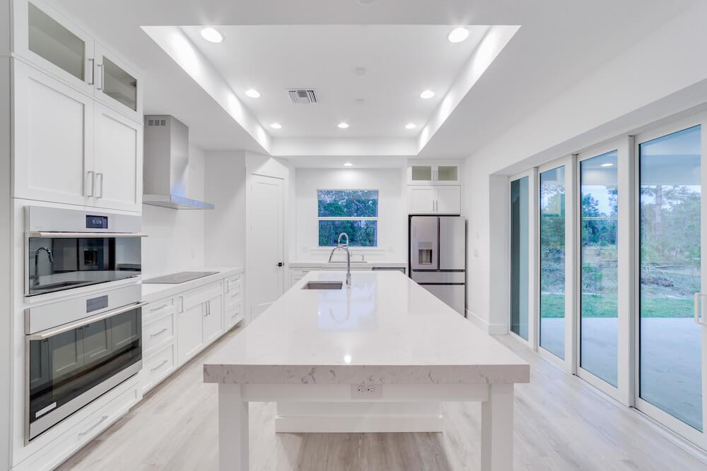 Notable features: Metal roof, Coretec Life-proof floors, impact glass, custom painted wood cabinetry, Quartz counter tops, 3-car oversized garage, custom kitchen design with built-in appliances, custom select shower wall tiles, prep for Outdoor Kitchen, old Florida style with taper columns up front