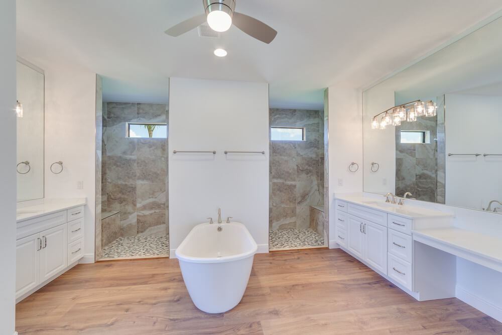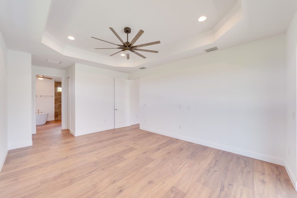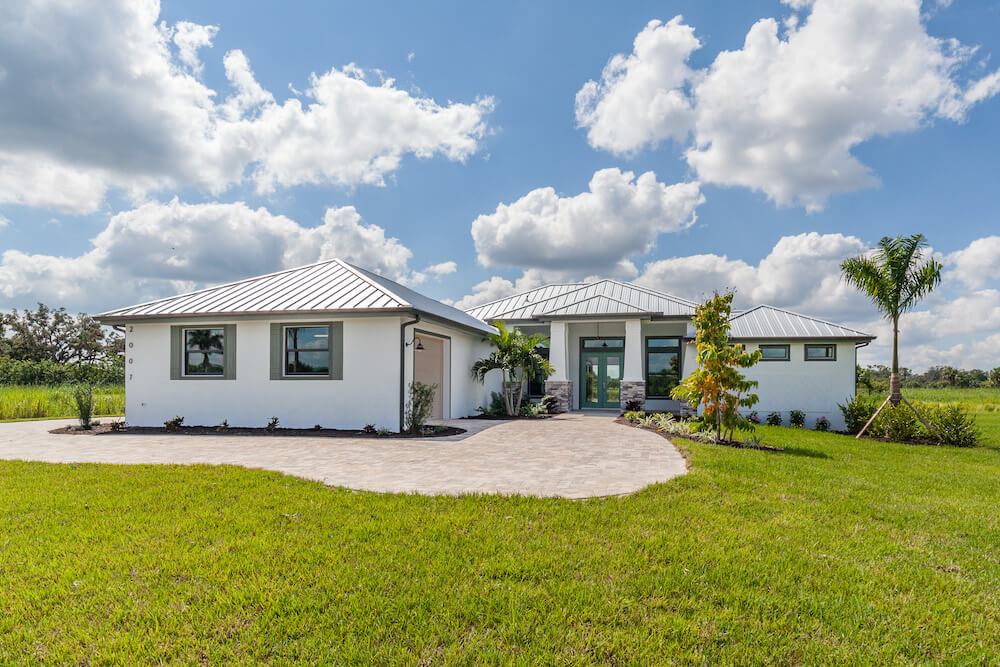 Notable features: 4 bedrooms, Study, Large utility, 3-1/2 baths, Walk-thru shower in master, Pool, Metal roof, Hurricane windows, 90 degree slider, Caloosa Bell elevation with front porch and tapered columns, Paver drive and walkway, Oversized garage, Upgraded 7” plank wood laminate flooring, Custom designed cabinetry with hand selected quartz tops