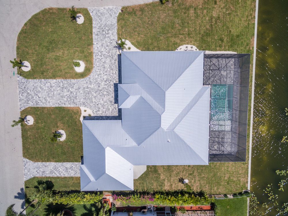 Notable features: Metal roof, impact glass, transom windows, 3rd car garage design, luxury vinyl plank flooring, upgraded custom shower tiles, custom cabinetry, hand selected granite tops, wine refrigerator in kitchen island, saltwater pool with spa, and a circular paver driveway.