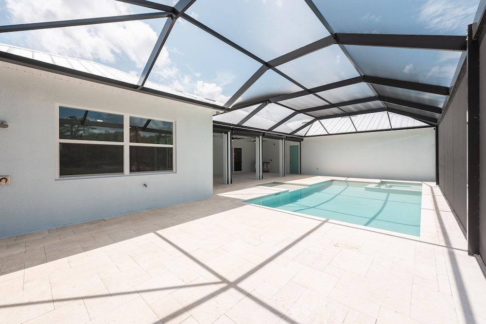 Step outside to your private oasis: a stunning pool and spa with a sunken spa, all set on a beautiful Shell Lock paver deck, perfect for relaxing or entertaining year-round. For your peace of mind and long-term durability, the home features a sleek and resilient metal roof.