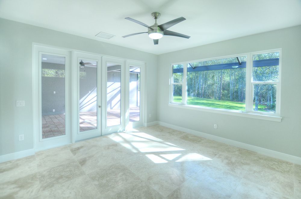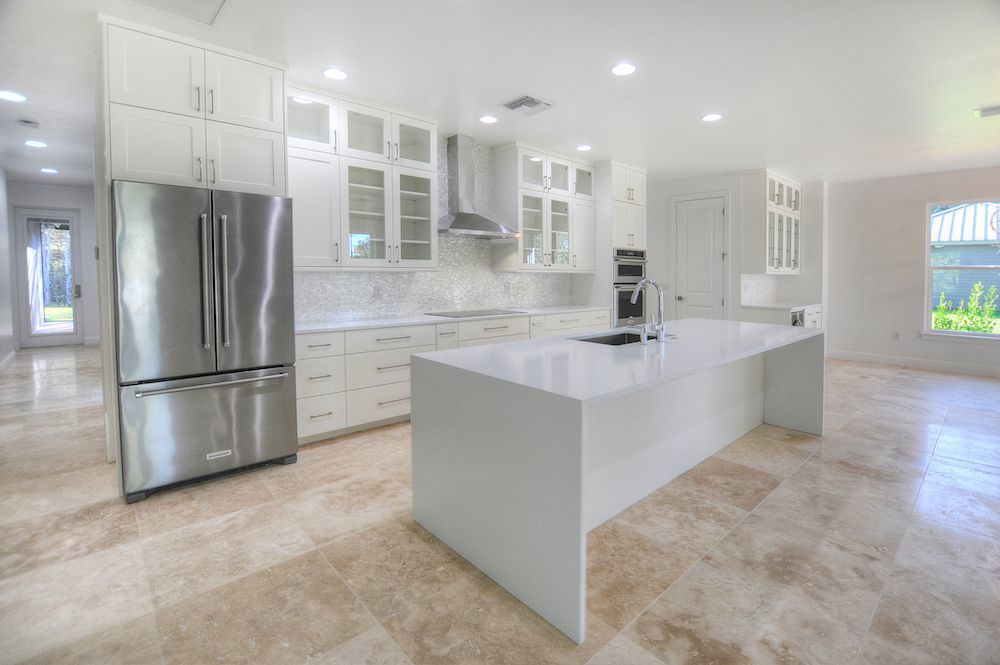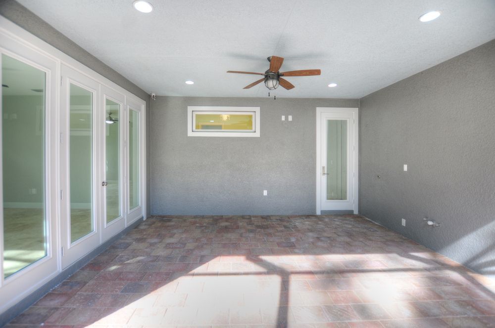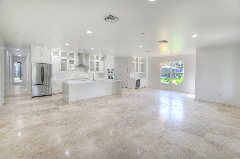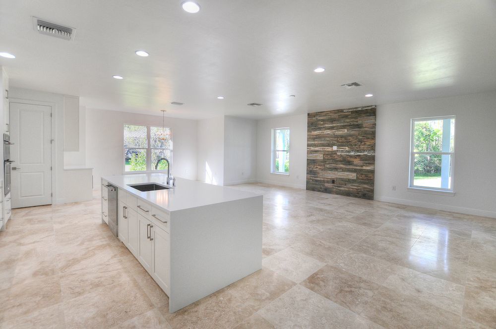 Notable features: Raised seam metal roof, impact windows and French doors, mud-set travertine with minimal grout line & Hone/seal in place flooring, custom floor to ceiling cabinetry, age in place design, built on acreage, custom designed white quartz tops with waterfall edges, custom designed utility room, and custom backsplash tile.