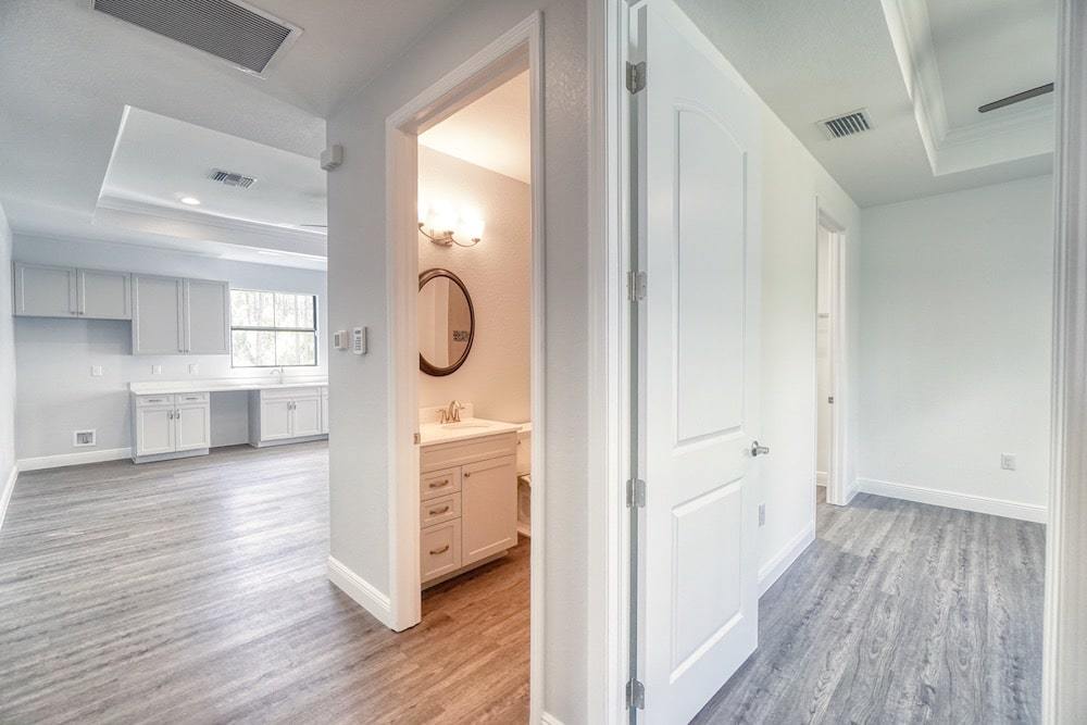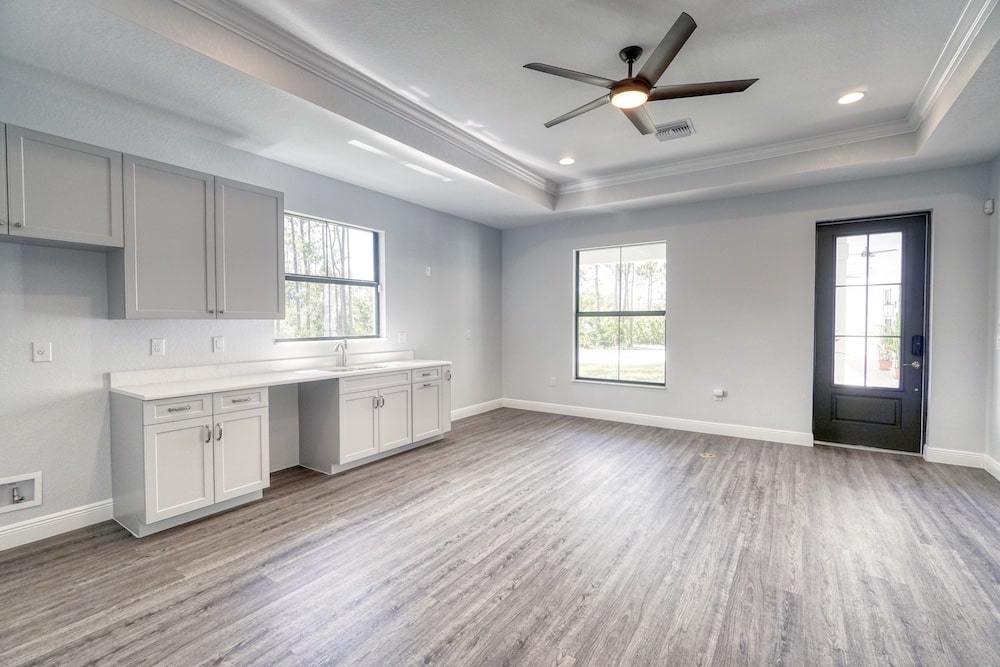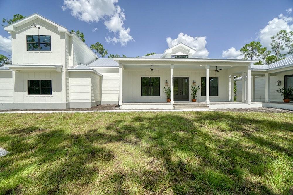 Notable features: Bonus room, In-law “wing” with breezeway, Separate entrances, Impact window and door glass, Metal roof, Custom kitchen with Cambria Quartz tops, Hand selected flooring and custom wall tile, Custom wall textures and ship lap wall finish, Custom barn door applications with pocket barn door in kitchen