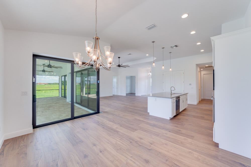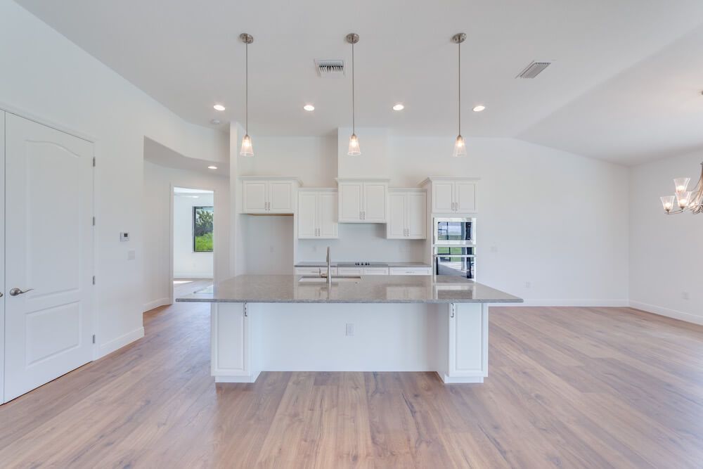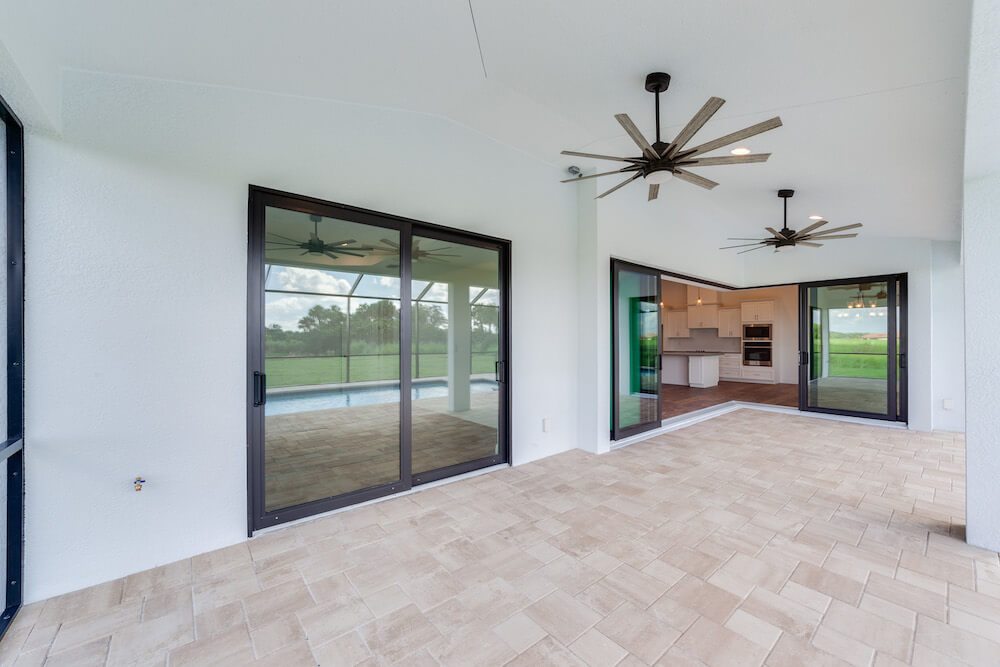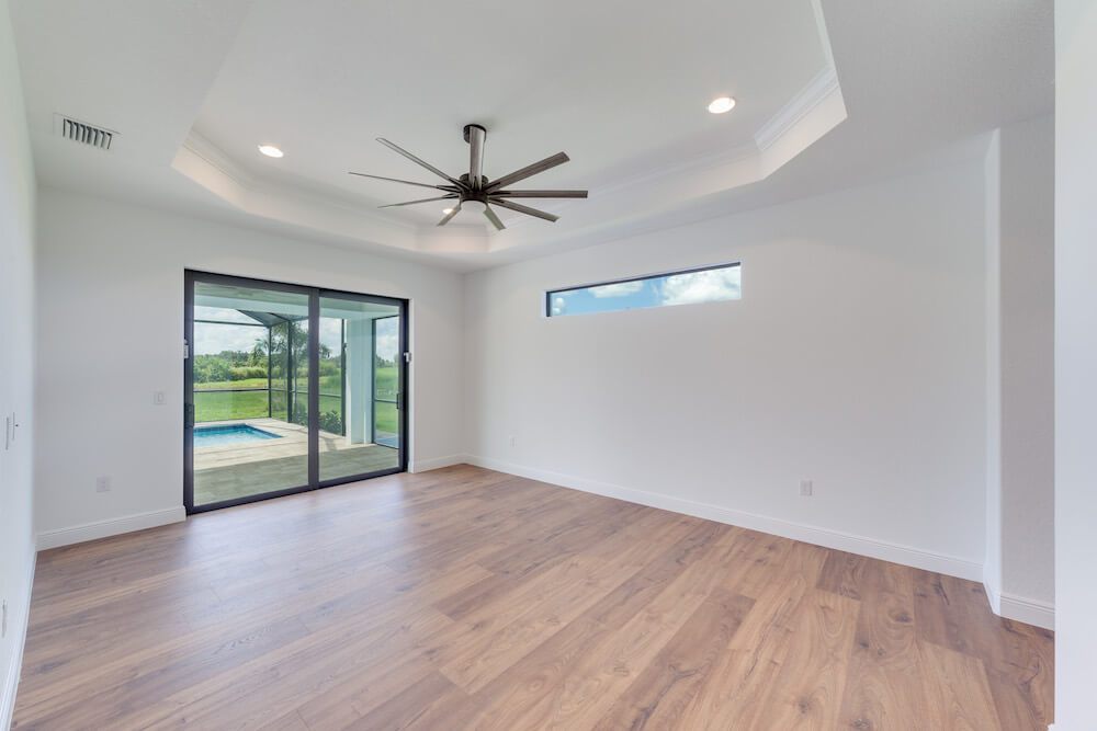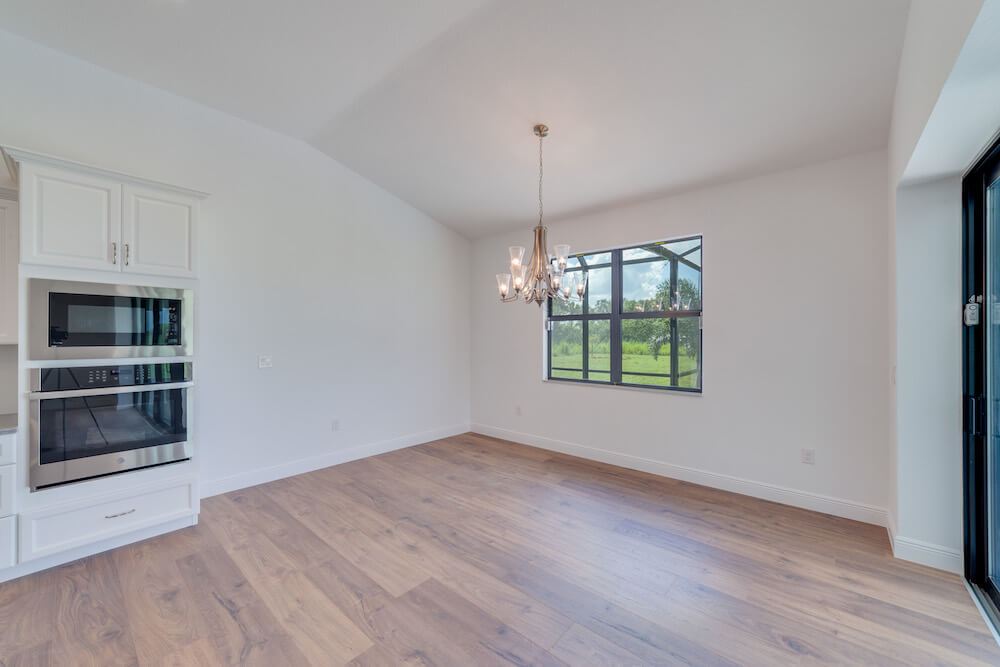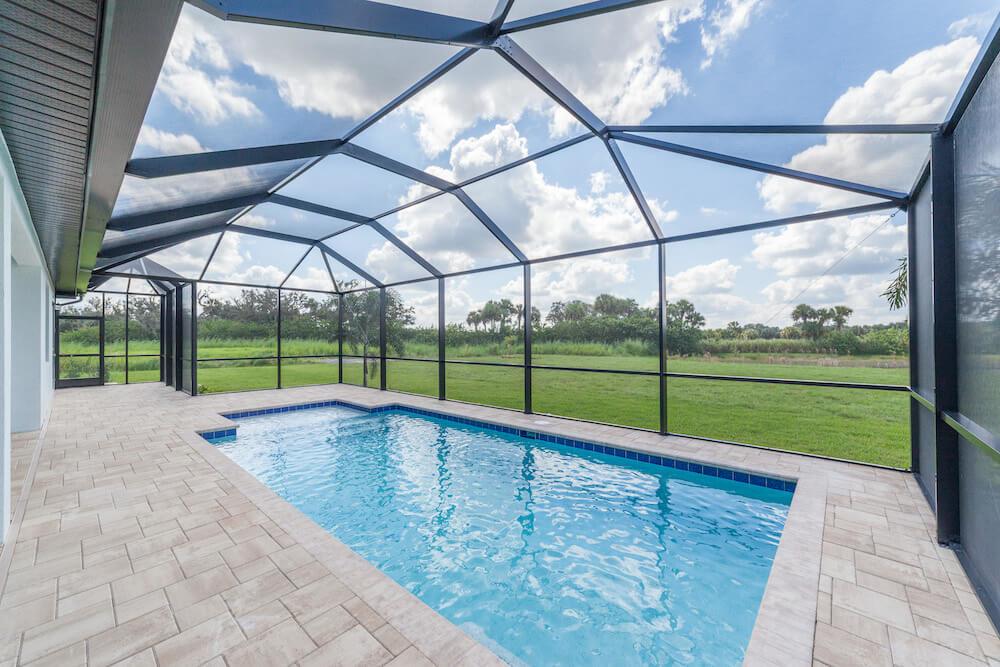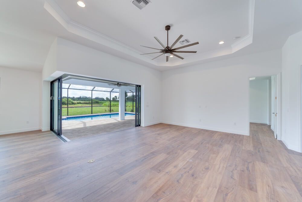 Notable features: 4 bedrooms, Study, Large utility, 3-1/2 baths, Walk-thru shower in master, Pool, Metal roof, Hurricane windows, 90 degree slider, Caloosa Bell elevation with front porch and tapered columns, Paver drive and walkway, Oversized garage, Upgraded 7” plank wood laminate flooring, Custom designed cabinetry with hand selected quartz tops