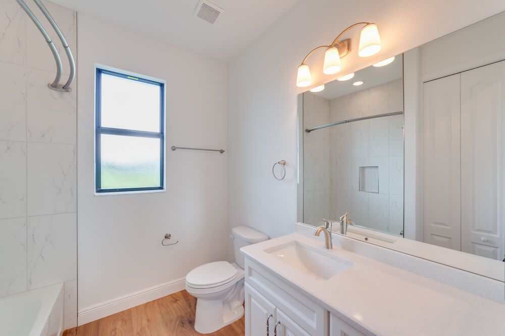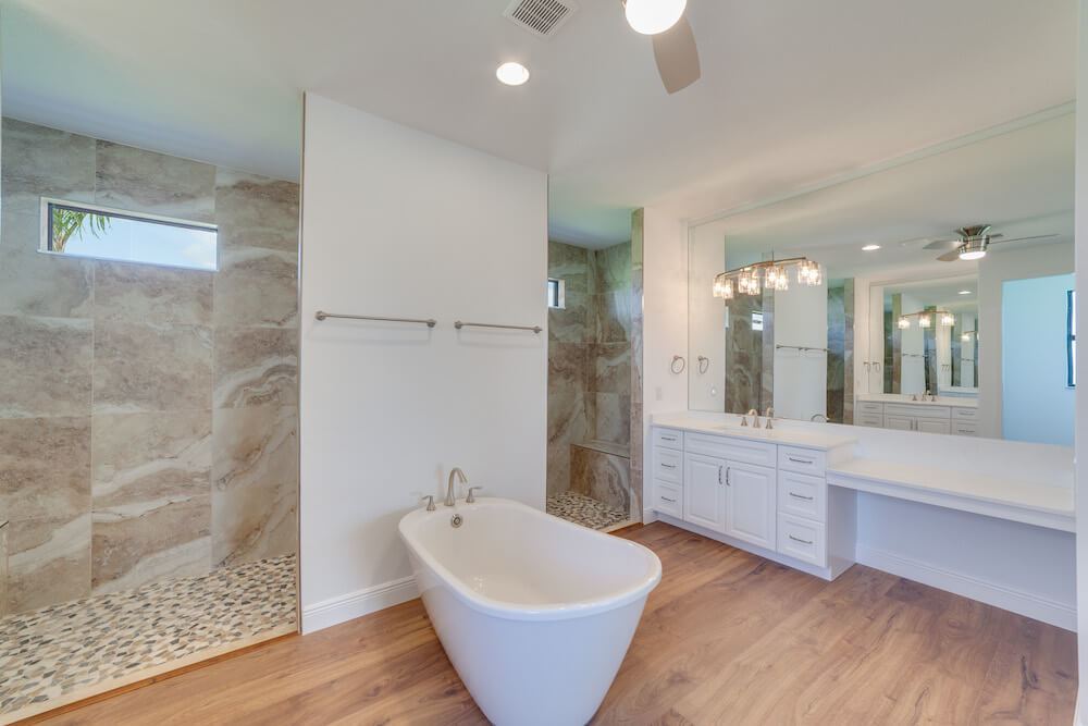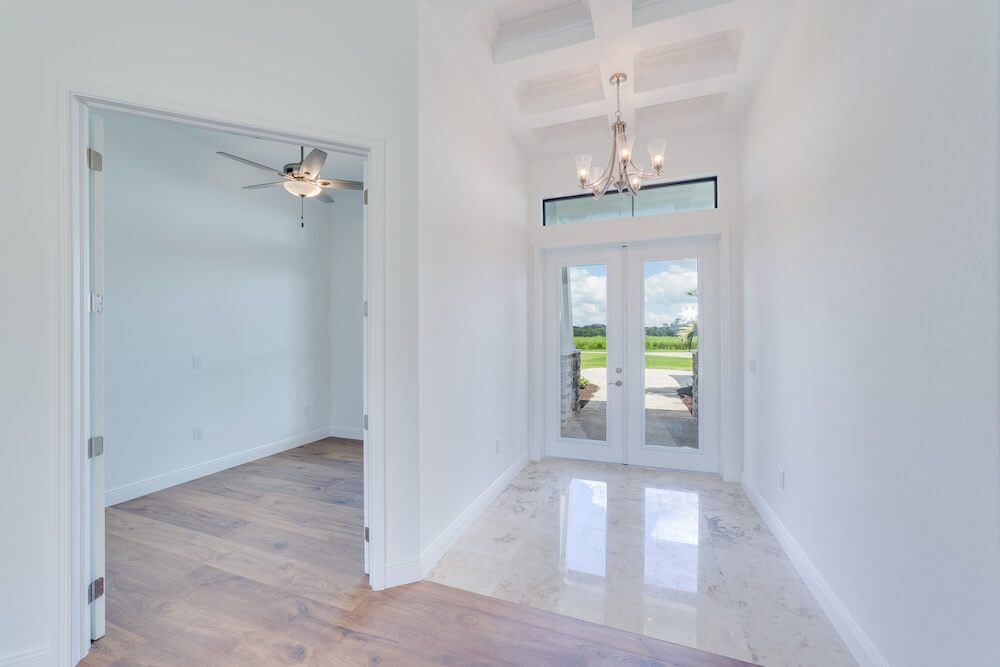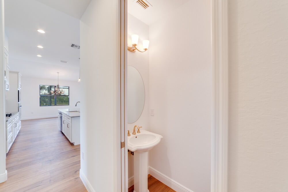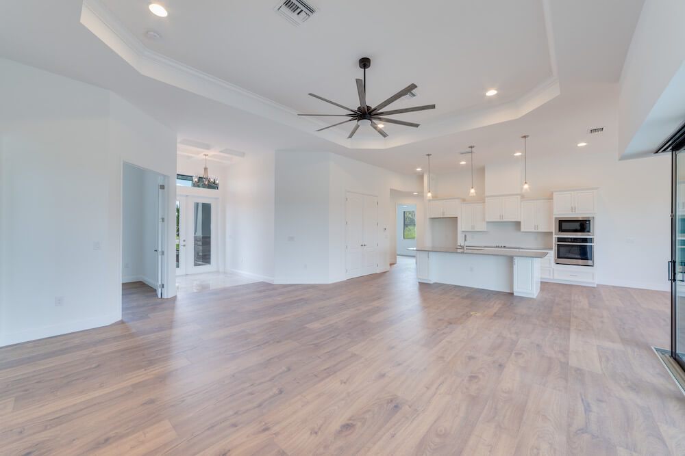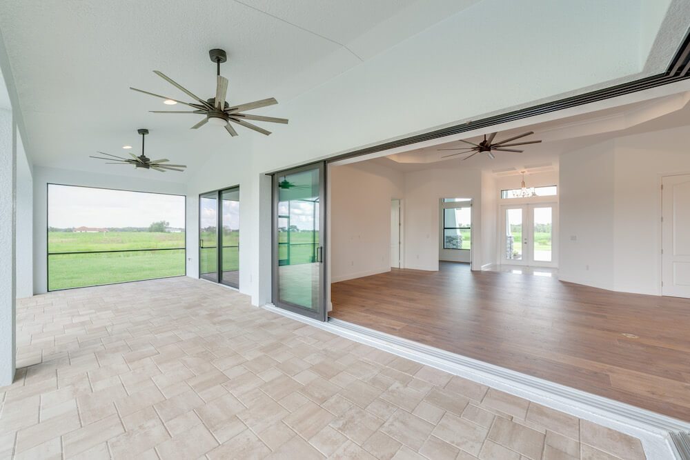 Notable features: 4 bedrooms, Study, Large utility, 3-1/2 baths, Walk-thru shower in master, Pool, Metal roof, Hurricane windows, 90 degree slider, Caloosa Bell elevation with front porch and tapered columns, Paver drive and walkway, Oversized garage, Upgraded 7” plank wood laminate flooring, Custom designed cabinetry with hand selected quartz tops