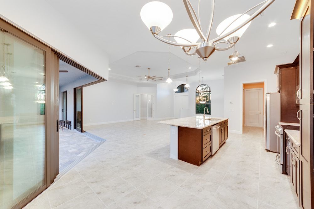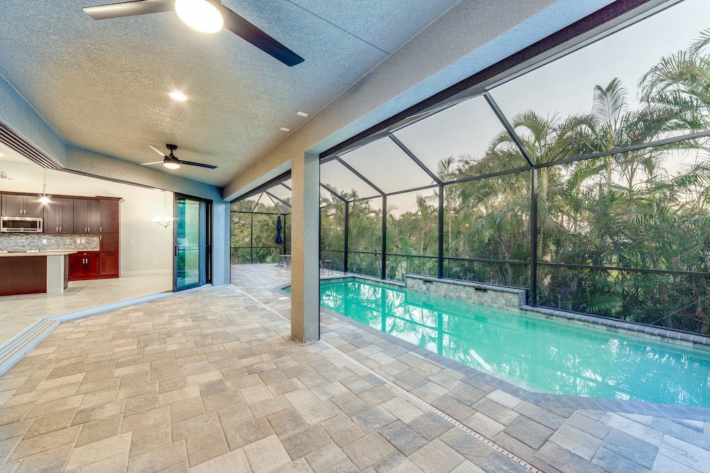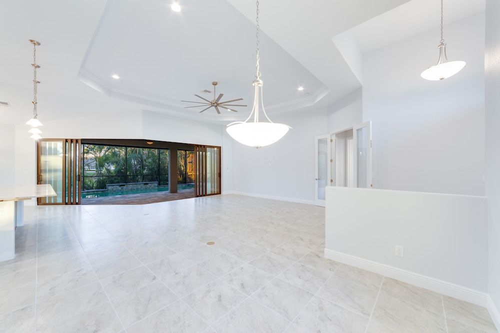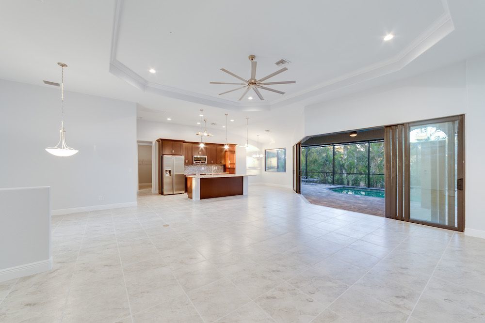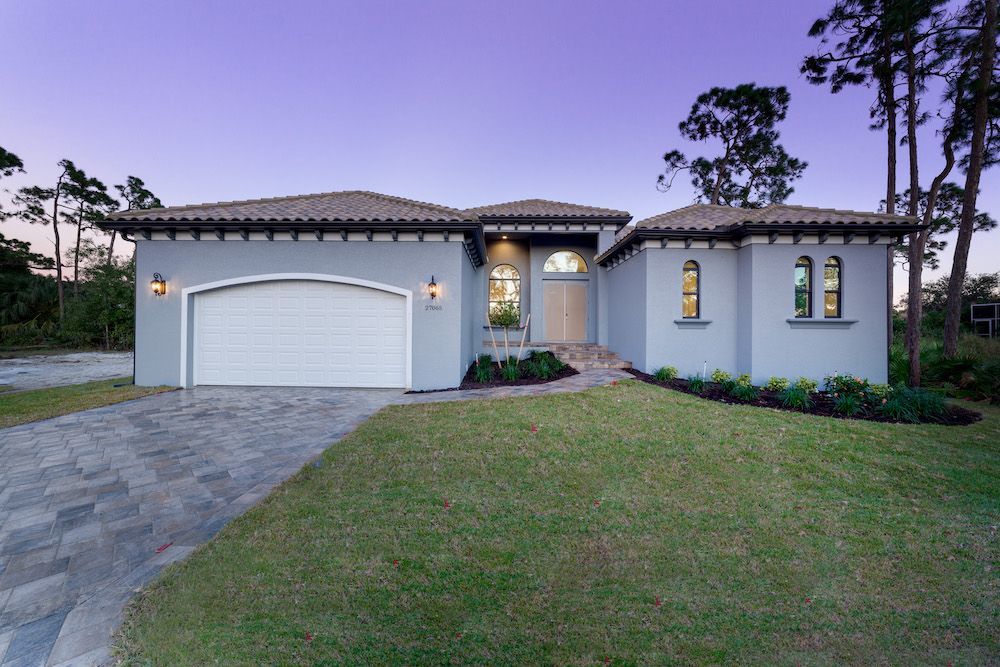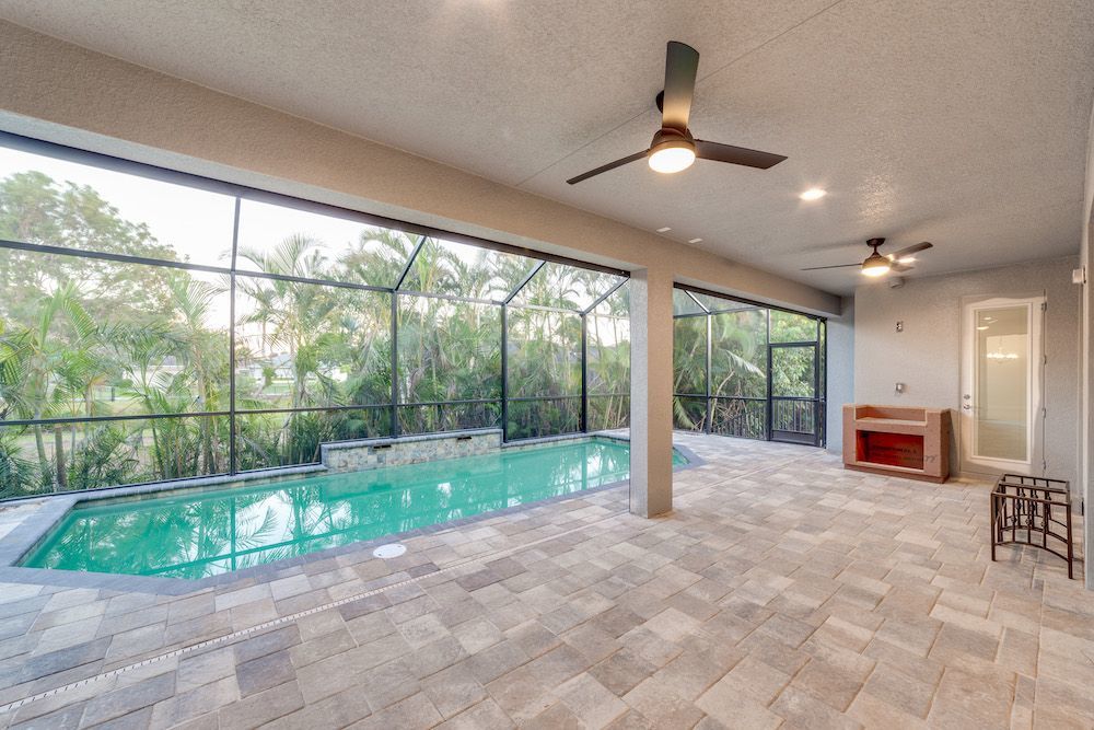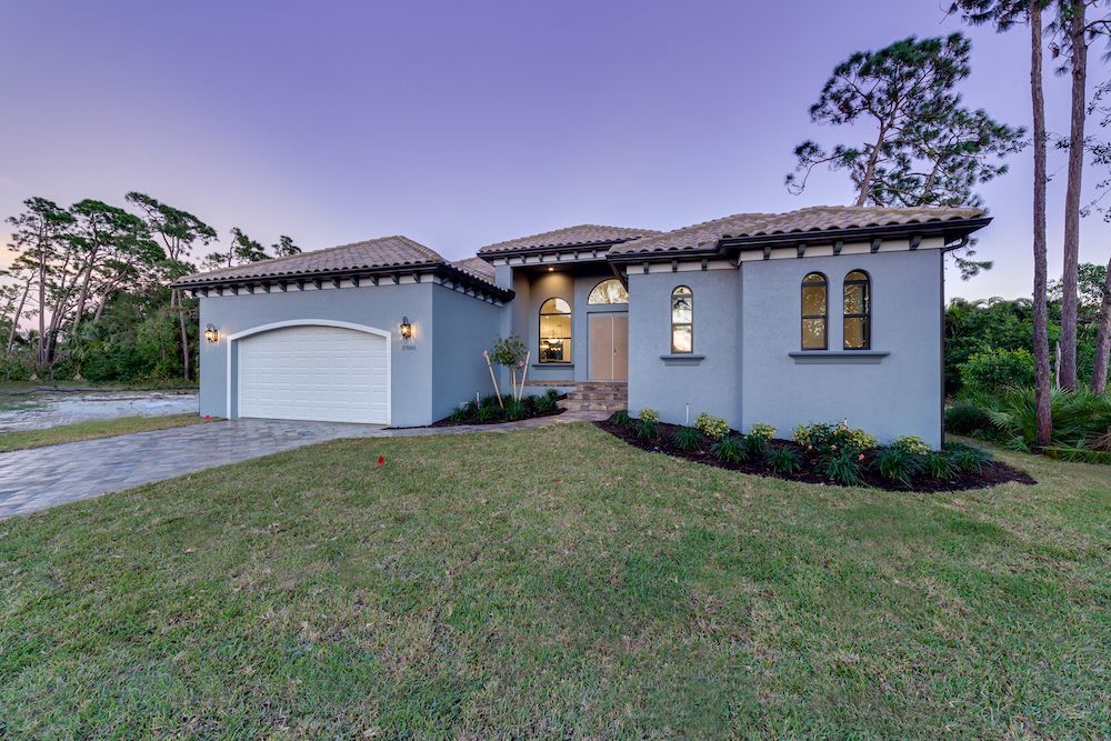 What a pleasure it was designing this home to fit on this lot. We used every square foot allowable within the set back requirements. We were able to provide enough ceiling height in the garage to allow for a custom car lift for extra parking. The home is an open concept design featuring 4 bedrooms and 2-1/2 baths with a beautiful pool and extended paver deck under cage. The Mediterranean accents blend nicely in the neighborhood and met all the community guidelines. The great room features an amazing view through the 135-degree sliding door configuration.