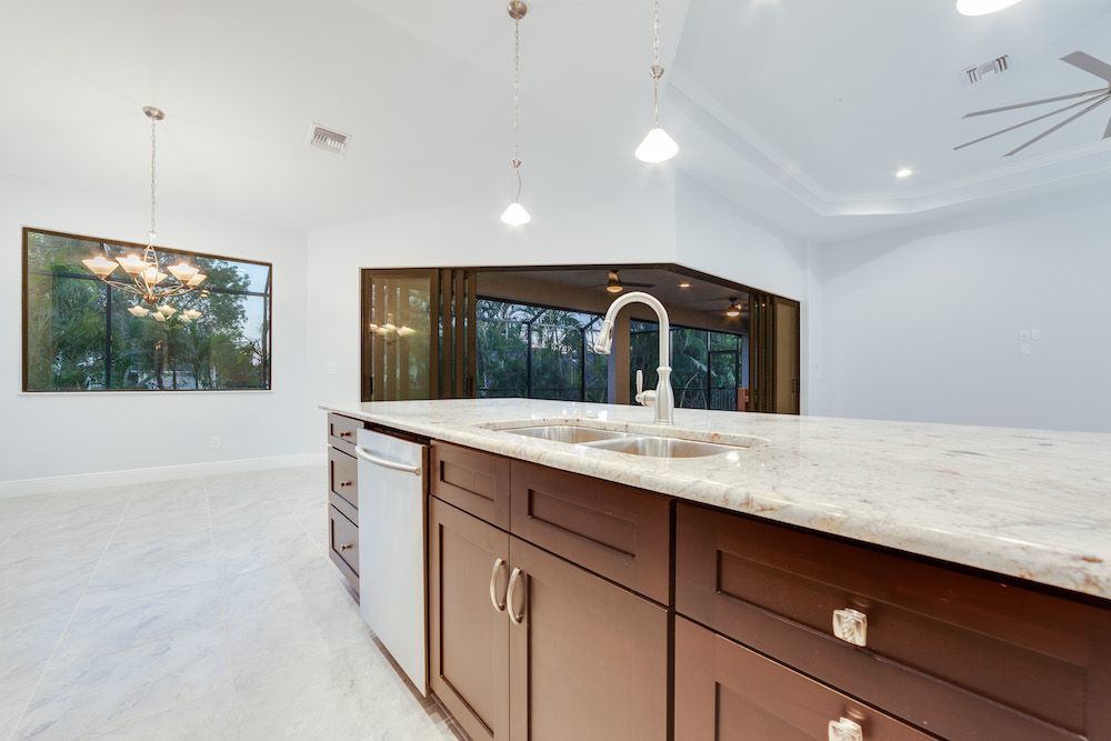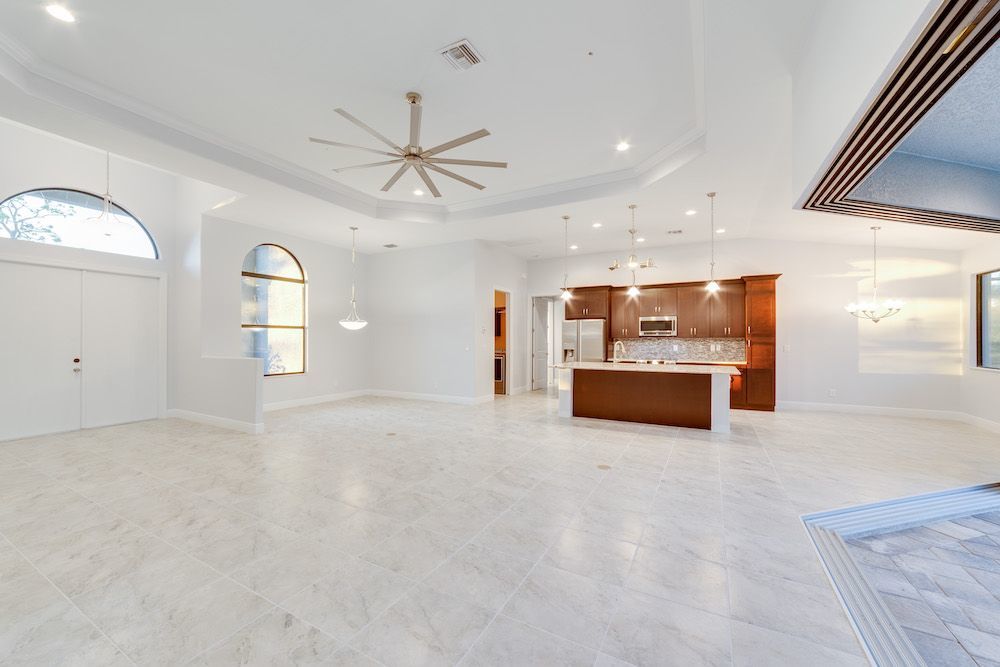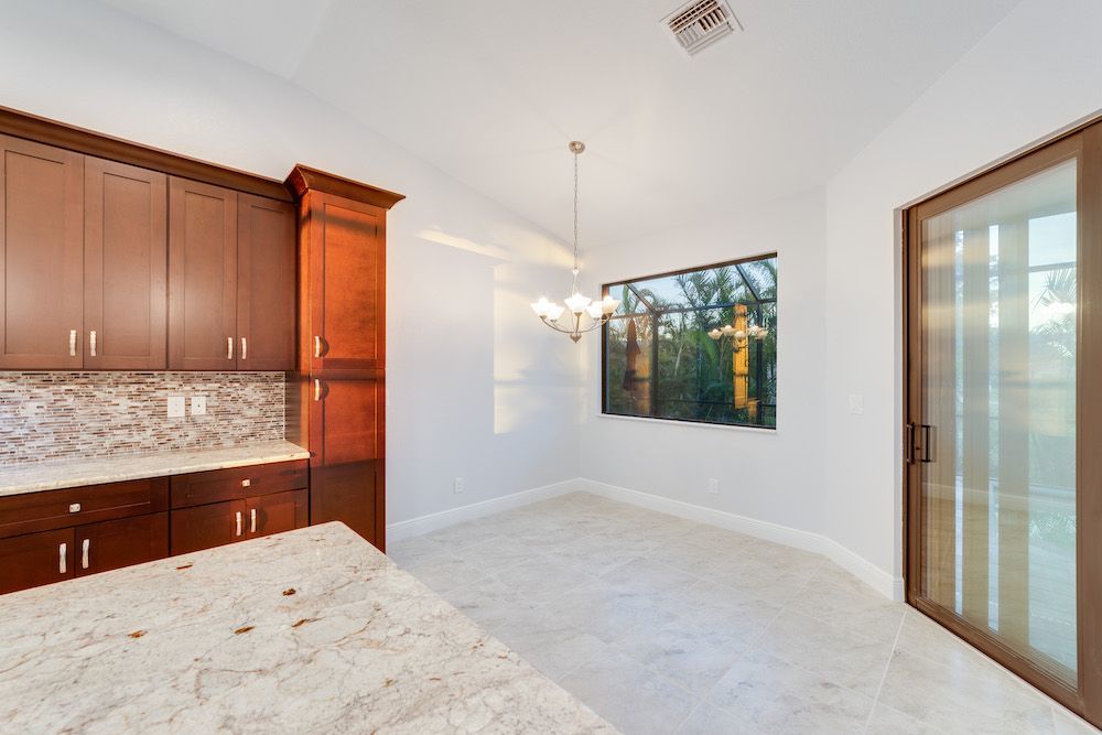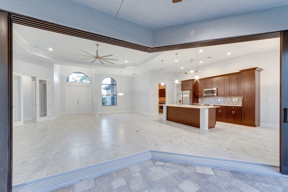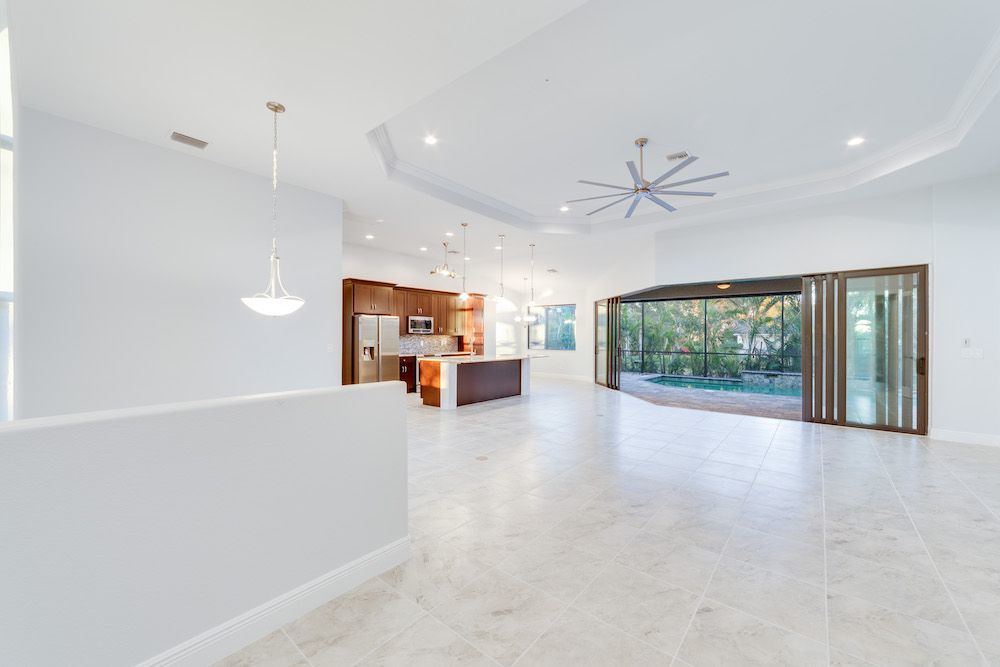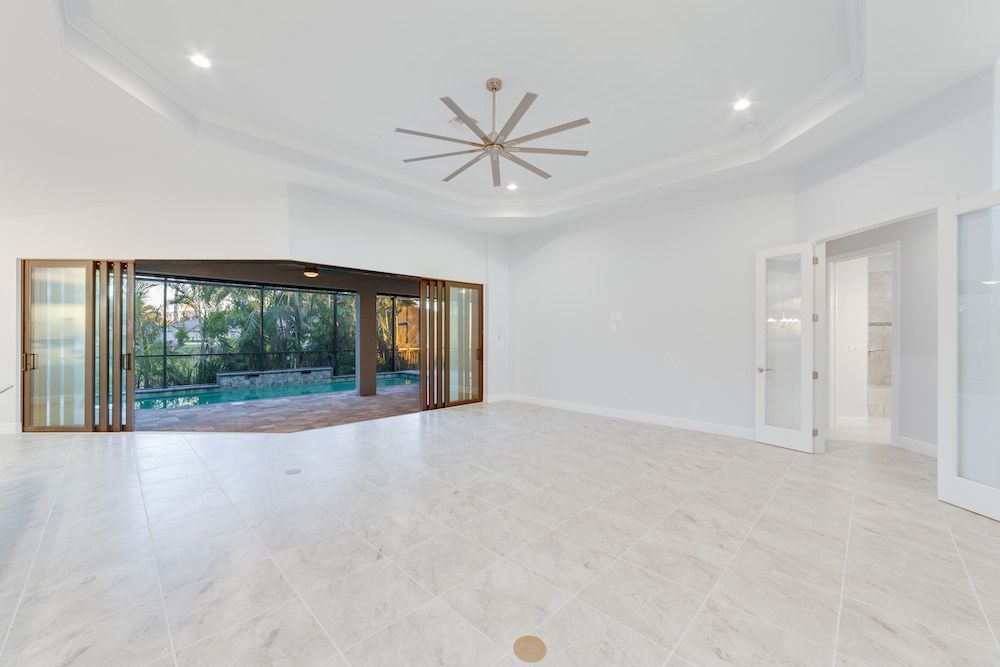 What a pleasure it was designing this home to fit on this lot. We used every square foot allowable within the set back requirements. We were able to provide enough ceiling height in the garage to allow for a custom car lift for extra parking. The home is an open concept design featuring 4 bedrooms and 2-1/2 baths with a beautiful pool and extended paver deck under cage. The Mediterranean accents blend nicely in the neighborhood and met all the community guidelines. The great room features an amazing view through the 135-degree sliding door configuration.