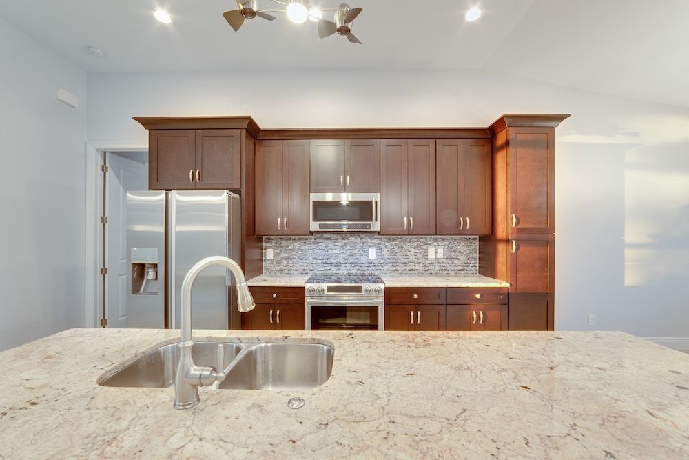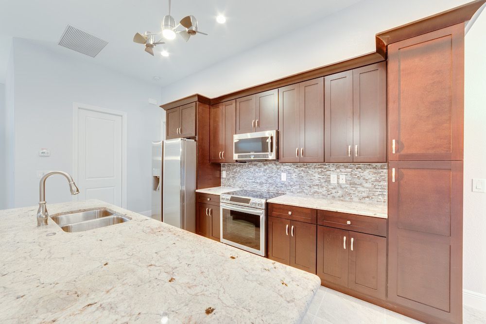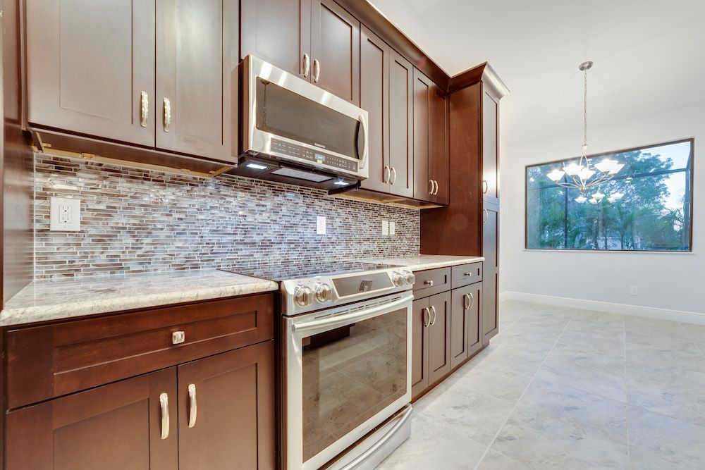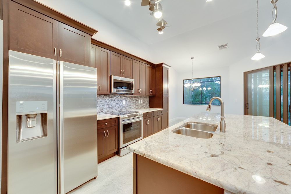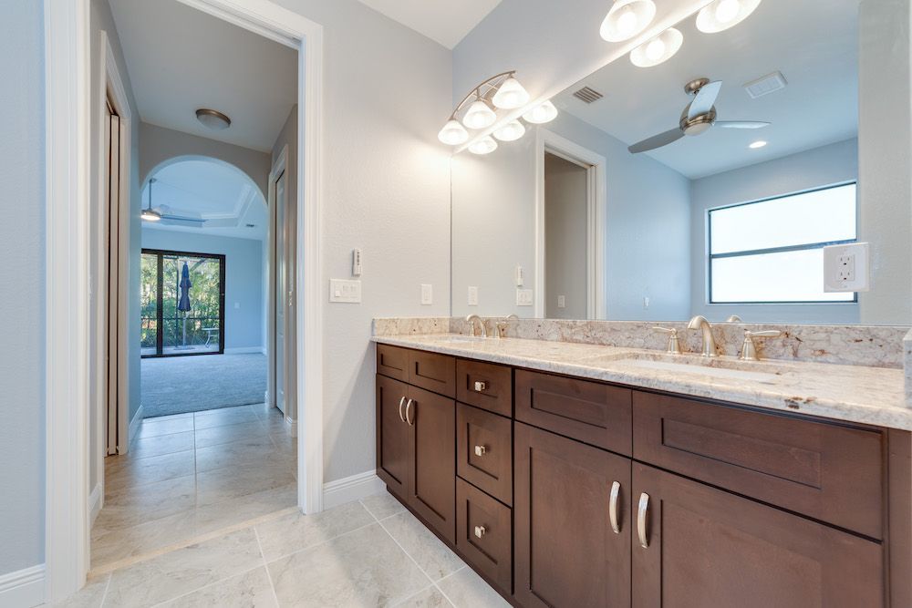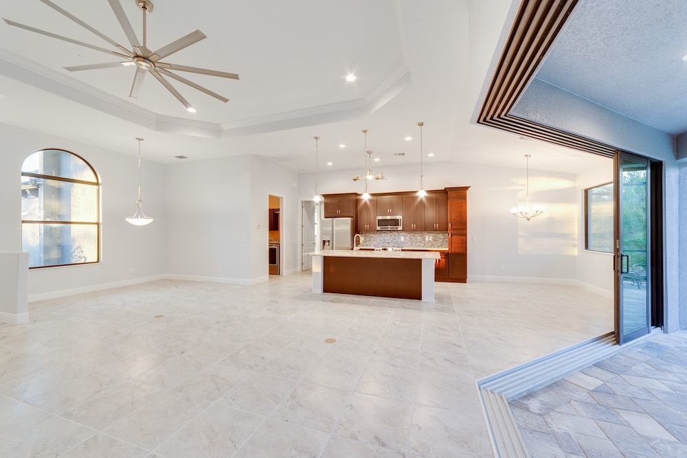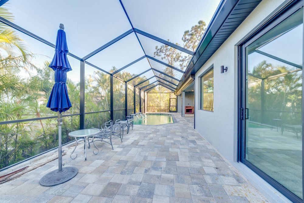 What a pleasure it was designing this home to fit on this lot. We used every square foot allowable within the set back requirements. We were able to provide enough ceiling height in the garage to allow for a custom car lift for extra parking. The home is an open concept design featuring 4 bedrooms and 2-1/2 baths with a beautiful pool and extended paver deck under cage. The Mediterranean accents blend nicely in the neighborhood and met all the community guidelines. The great room features an amazing view through the 135-degree sliding door configuration.